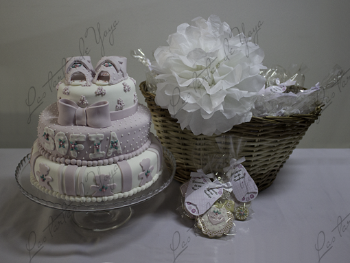 Este fin de semana tuvimos el placer de preparar esta tarta y galletas para el bautizo de Sofía.